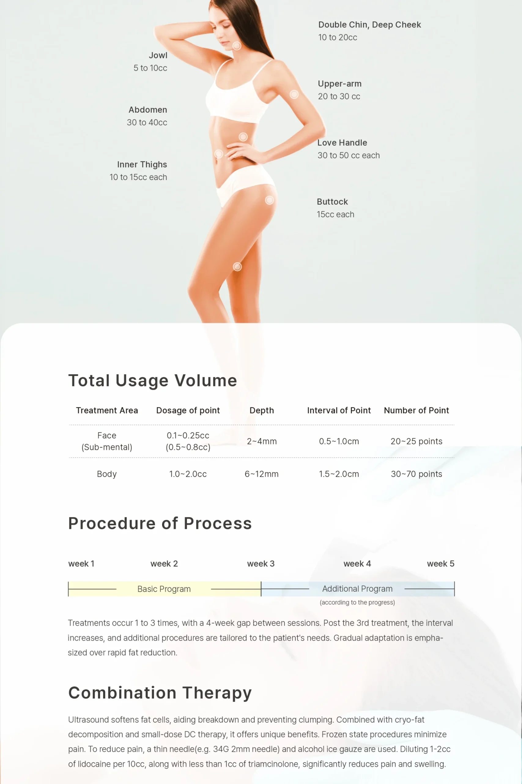 - Targeted breakdown of fat cells in resistant areas