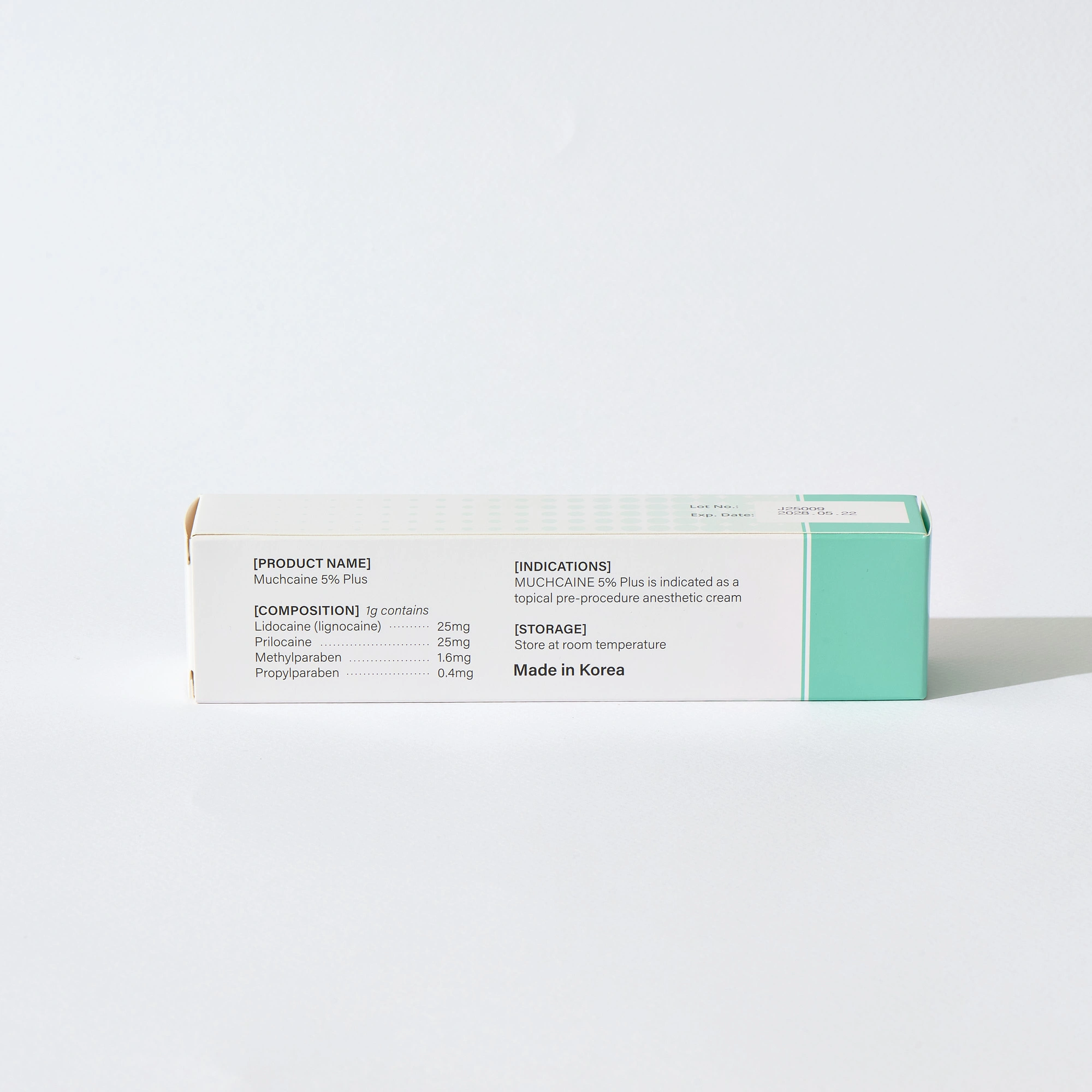 Muchcaine 5% Plus 100g is a topical anesthetic cream intended to numb the skin before a wide range of medical and aesthetic procedures. It contains two local anesthetics—lidocaine 2.5% and prilocaine 2.5%—which work together to reduce skin sensitivity and improve comfort during treatments that may cause pain or irritation.